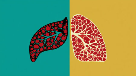 Two livers side by side, one representing fatty liver and the other showing a healthy liver to illustrate differences in liver condition.