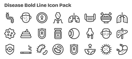 Vector pack with 24 Bold Outline icons inspired by Disease, ideal for scalable and creative design work.