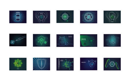 set of icons immunity, protecting from virus vector illustration design
