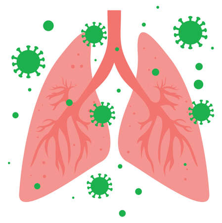 vector illustration for lung infection with bacteria and microbes attacking organ