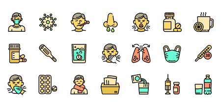 Flu icons set. Outline set of flu vector icons for web design isolated on white background