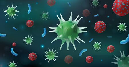 Abstract viruses and microbe. Infection flu. Danger that cause harm to a living organism. COVID-19 pandemic virus. Disease. Microscopic view. Epidemic flu. 3d illustration