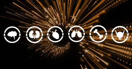 Image of medical icons over stars. global business and digital interface concept digitally generated image.