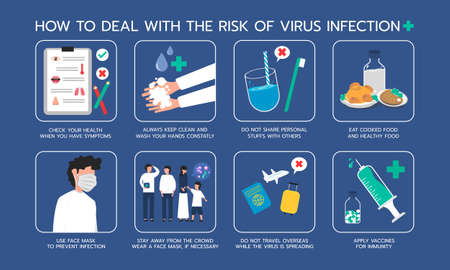 Infographic illustration about how to deal with risk of virus infection. Flat design