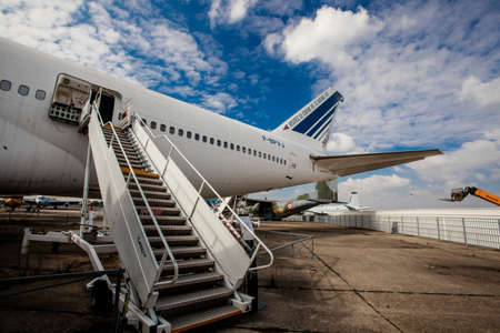 Le Bourget, Paris, France - October 8; 2016 : Aircrafts in the Museum of Astronautics and Aviation Le Bourget.Visitors leave the plane