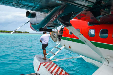 beauty of exotic island - maldives. Seaplane on water