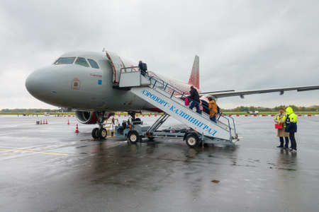 Kaliningrad, Russia - October 12, 2017: Rossiya airlines Aeroflot airplane at the airport Khrabrovo