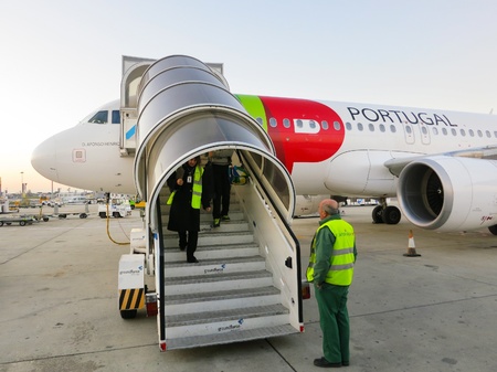 Lisbon, Portugal - February 18, 2012: TAP airplane in Lisbon airport