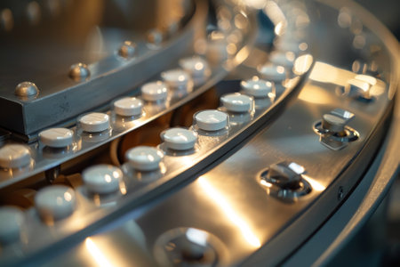 Explore the intricacies of modern automated machinery with this close-up image showcasing precision metal components and innovative designs in a manufacturing setting.