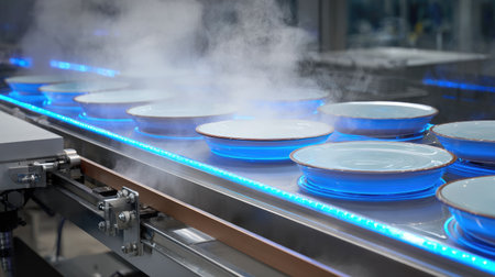 A cutting-edge semiconductor production line with robotic precision.
