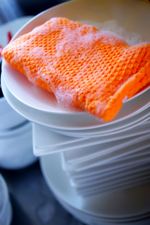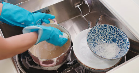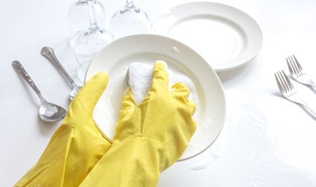 High quality photo of washing dishes on white background for domestic chores and kitchen cleaning
