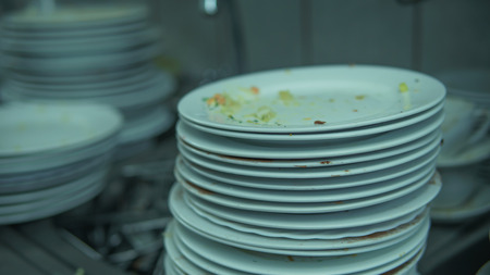 Lots of dirty dishes, after co-op or banquets. The concept of dirty cuisine in the restaurant.
