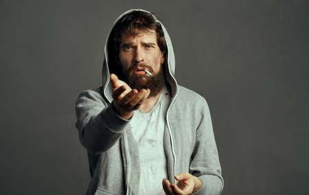 homeless man with beard emotions beggar