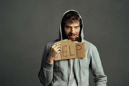 Beggar man calling for help depression homeless financial problems