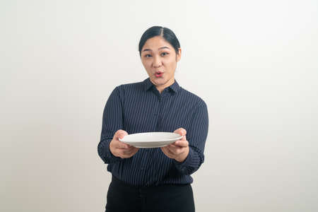 portrait Asian woman with empty plate on hand