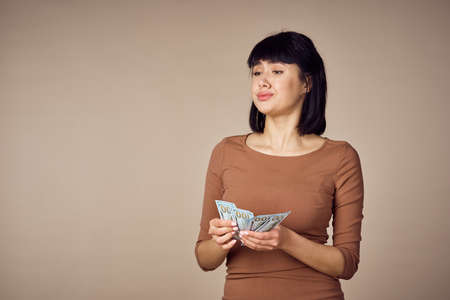 emotional woman with money in hands finance positive