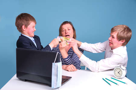 A family of mothers and sons divides the family budget in the form of money in euros. Fight over a 200 euro bill