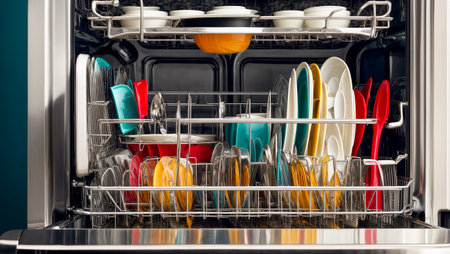 A Fully Loaded Dishwasher Brimming with Sparkling Clean Dishes. Generative AI