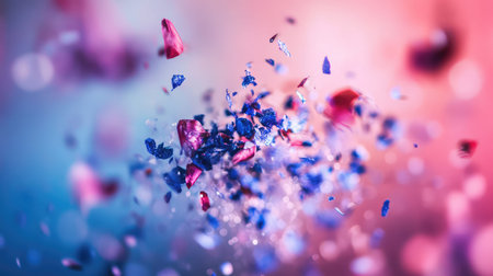 Explosion of glass shards abstract art fragmented reflections. Broken pieces colorful light futuristic style. Destruction shattered sharp edges. Modern artwork contemporary design innovative concept. AI Generative AI generated