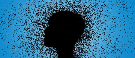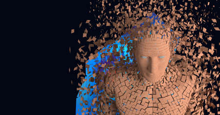 Man face with pixel dispersion effect. Concept of technology, modern science but also disintegration of mind etc. 3D rendering