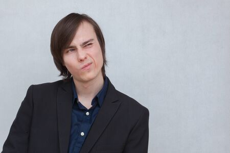 Young man feeling confused and displeased staring in disgust. Looking puzzled not understanding or liking something. Portrait with copy space. In People, feelings reaction and Human expressions.