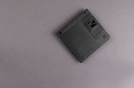 Floppy disk on the table. Nostalgia concept. A rudiment or object that has gone down in history. Background with copy space for text