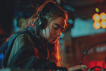a female dj playing the music in the club bokeh style background
