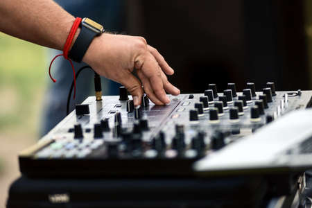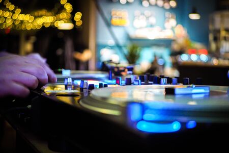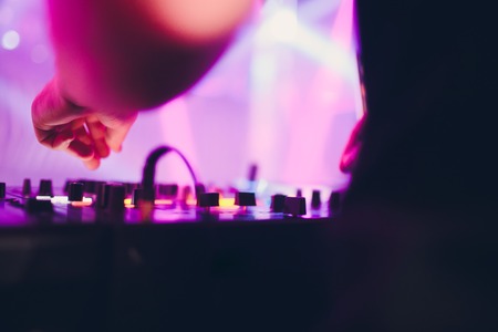 DJ mixing in a karaoke bar. Soft focus on hand - a concept of entertainment, youth, entertainment and relaxation