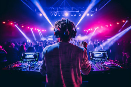 DJ plays electronic music in a nightclub at a party