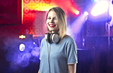 Smiling beautiful female deejay in a discotheque