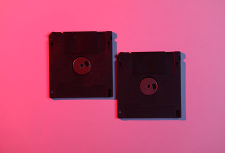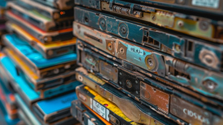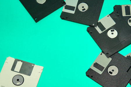 A stack of old 3.5-inch floppy disks sits on a table, a monument to a bygone era of digital storage.