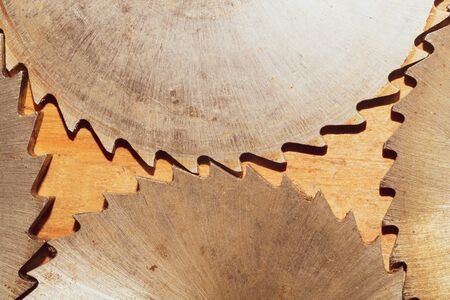 Circular saw blades. carpentry tools. industrial background. equipment for sawmill and sawing wooden products
