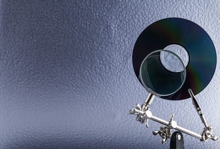 Concept for data analysis, CD and lens on a vivid colors background