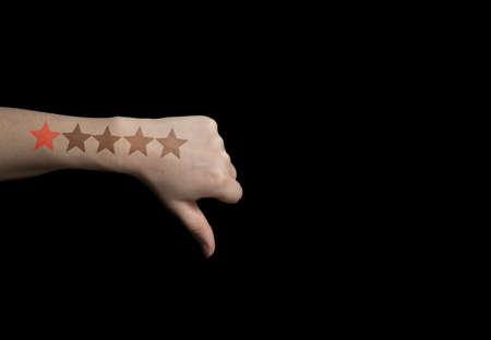 Bad review, Thumb down with red stars for bad service dislike bad quality, Customer experience, rating, social media concept background
