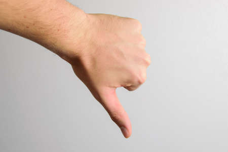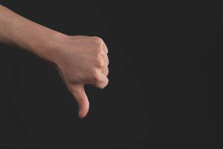 Hand gestures. Thumbs down, dislike disapproval. womens hand