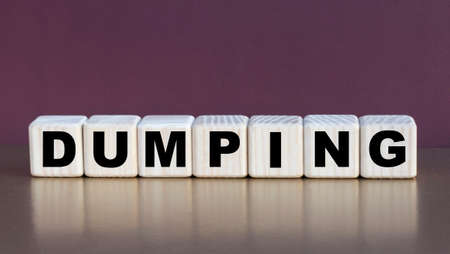 DUMPING - the word on the cubes on a beautiful burgundy background. Business concept