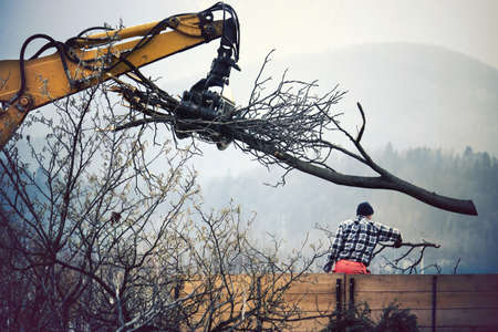 Heavy harvester loader truck, man working in timber industry (unidentified person)