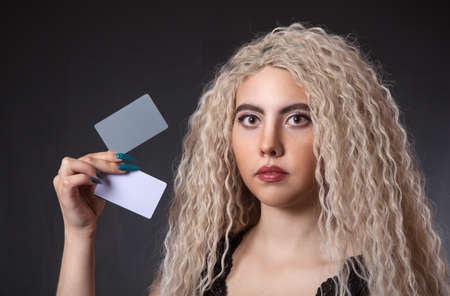 attractive woman on plein background shot in studio with soft lights with an interesting expression and dramatic lighting Black And White, b&w