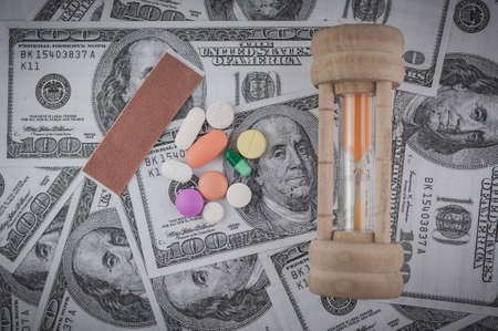 Money and pills, health pill tablet cash dollar capsule pharmaceutical