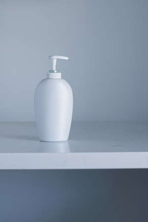 Bottle of liquid soap, shower gel or shampoo. Toned image. Shampoo bottle with dispenser