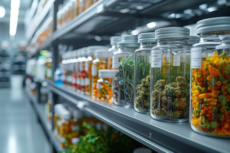A vibrant display of cannabis-infused products fills a dispensary shelf Edibles, topicals, and concentrates cater to both medicinal and recreational users The variety of brands and flavors showcases the growing consumer market for cannabis-derived goods AI Generative
