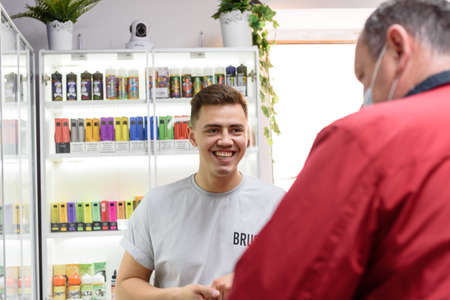 Russia, May 15, 2021: seller and buyer in the store-the concept of service in the retail business.