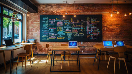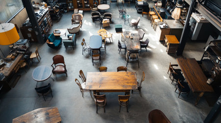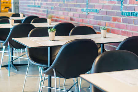 Empty Chairs and Tables in a Modern Industrial Cafe