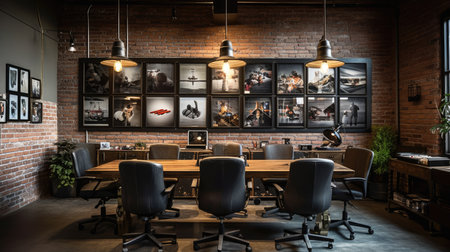Inspiring office interior design Industrial style Corporate Office featuring Exposed brick wall architecture. Generative AI AIG 31.