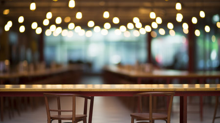 Serene Cafe Interior With Wooden Tables, Fairy Lights, And Lush Greenery, Perfect For Text Overlay