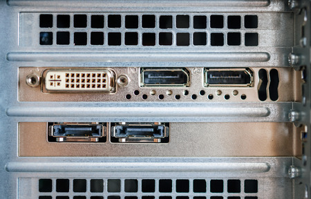 DVI, Display Port and Esata connection seen on the back of a powerful computer workstation