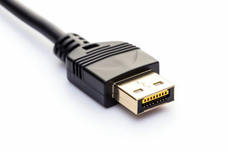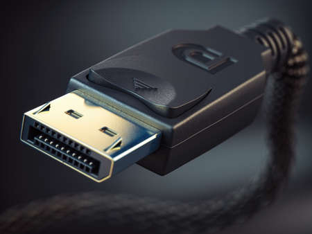 Closeup of Display port DP cable video monitor connector on black background. 3d illustration
