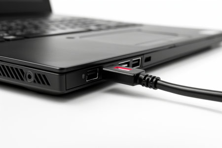 A macro view captures the precise engineering of an HDMI port on a sleek, modern laptop.