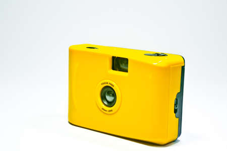 5 February 2021, Bangkok, Thailand. Close-up old film camera on a white background.