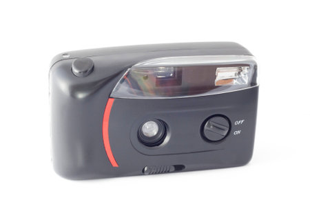 kent, uk 01.01.2023 Agfa funcam summer motor flash retro 35mm Film Point & Shoot Camera isolated on a white background. vintage hipster style camera making a fashionable come back in youth culture.